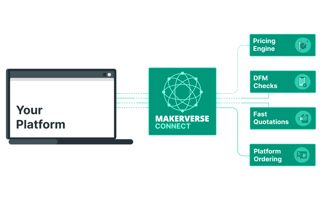 Portate la vostra piattaforma a un livello superiore. Integratevi con MakerVerse per avere accesso immediato a una catena di fornitura globale.